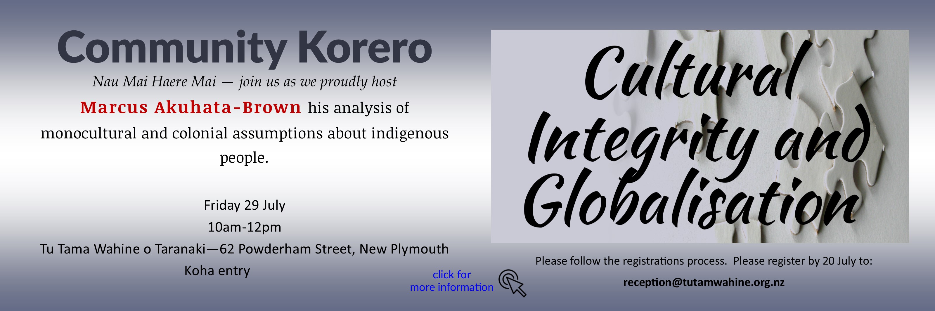 Wednesday 27th July 2016 in WaitaraFriday 29th July 2016 at Tu Tama Wahine