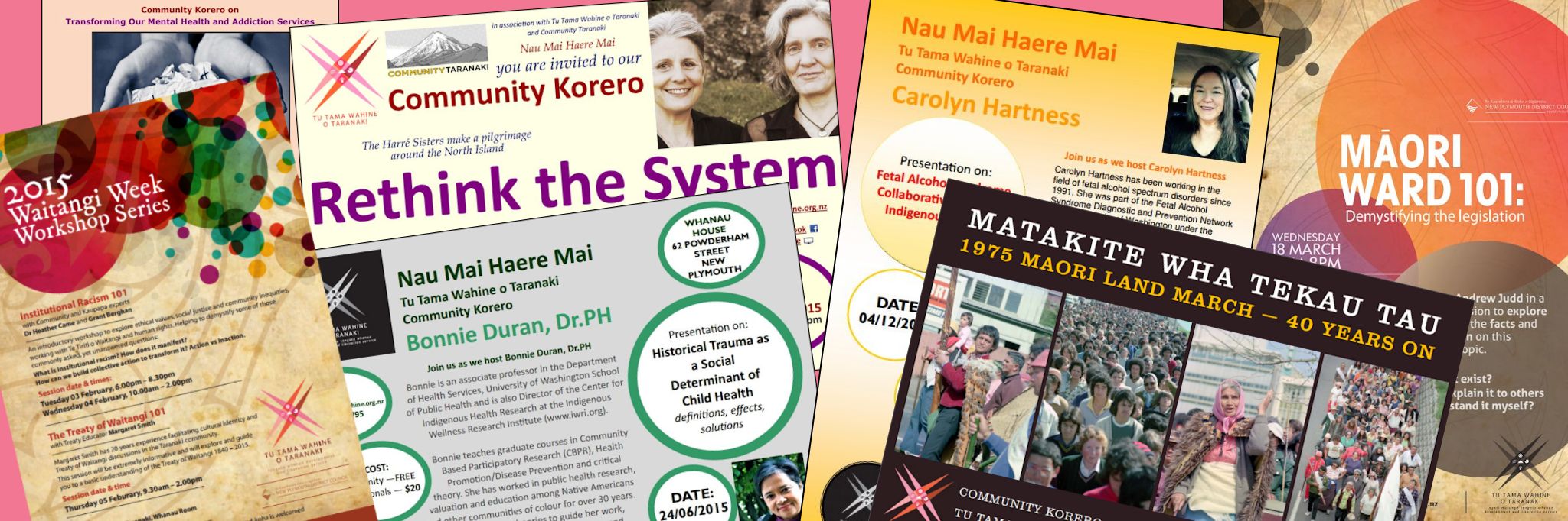 We host regular Community Kōrero sessions with local, national and international thinkers, healers, artists and academics speaking on matters relating to the social, economic, environmental and cultural wellbeing of Taranaki.